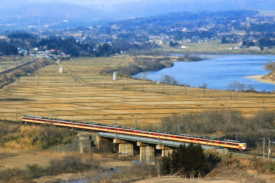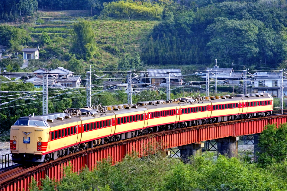 上野 那珂川橋梁を渡るK4編成。先頭車のクハ481-1104は1993年に「ビバあいづ」用としてクロハ481-1501へ再改造されています。 (2023/07/20追加) |