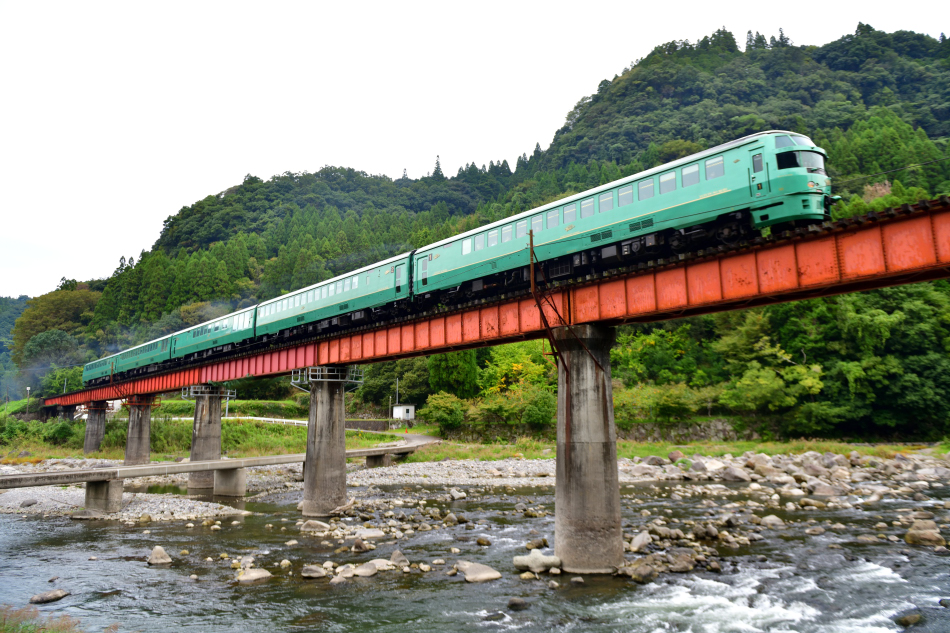 キハ72-1を先頭に天ヶ瀬の渓谷地帯を走る「ゆふいんの森1号」が沈下橋とクロスする第5玖珠川橋梁を約5分程遅れで通過。今回の旅は当初鉄道+バスで立案しましたがとにかく本数が少なく観光できないため,福岡空港からレンタカーで効率的かつ快適に回って来ました。おかげでこういった写真もゲットできました。 (2025/10/19追加) ![]() |