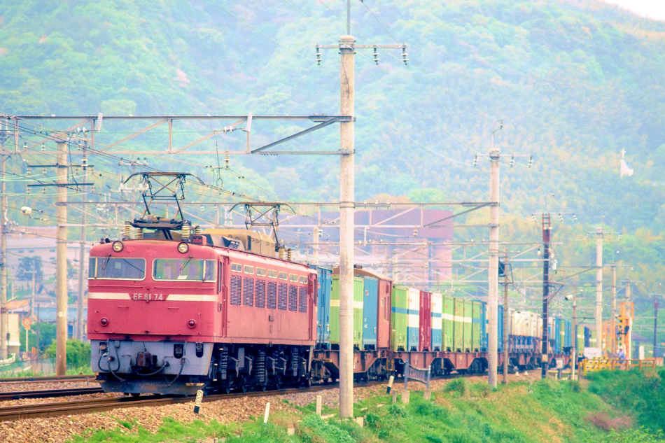| No.126‐22 1986年4月27日 EF81 74+コキ 貨物 東海道本線 高槻←山崎 |