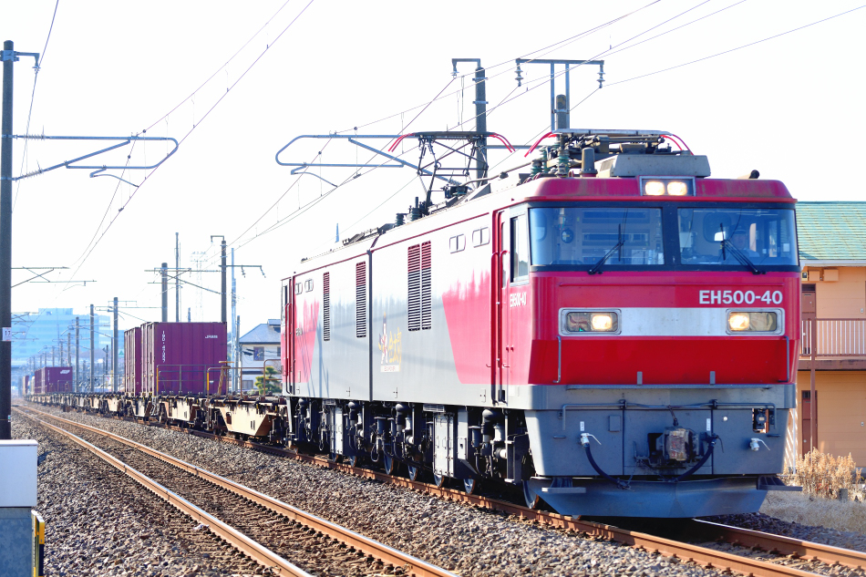 頻繁にやってくる上りコンテナ列車の先頭には必ずEH500。まさに大動脈の担い手です。 (翌日追加 2023/03/10ワイド化) |