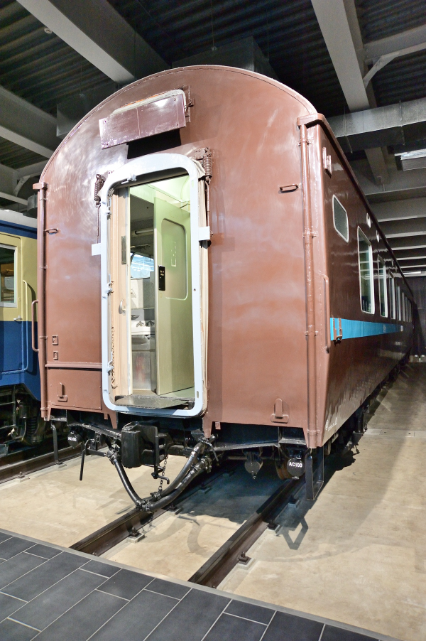 冷房完備のプルマン式2等寝台車ですが,職用車に改造されていたため,窓がユニットサッシになっていますが,その後,原形に戻されています。 (2022/10/06ワイド化) |
