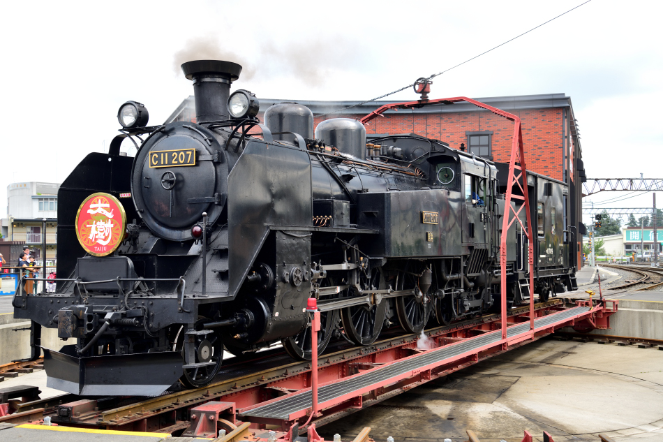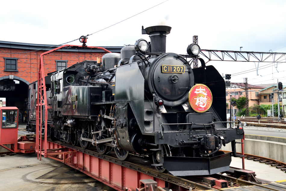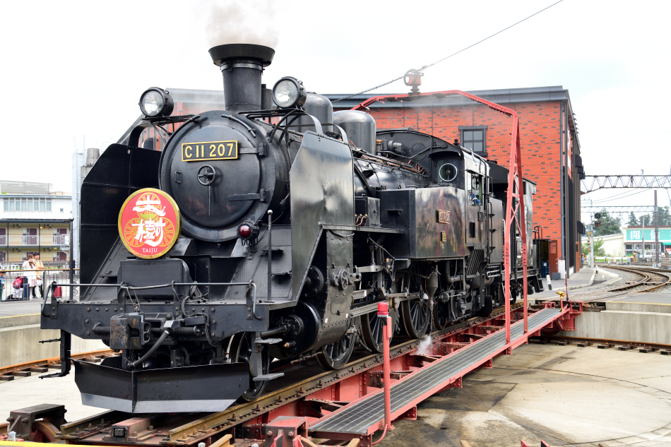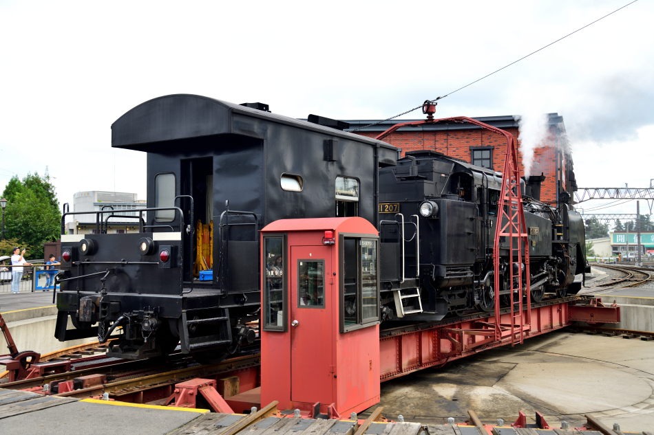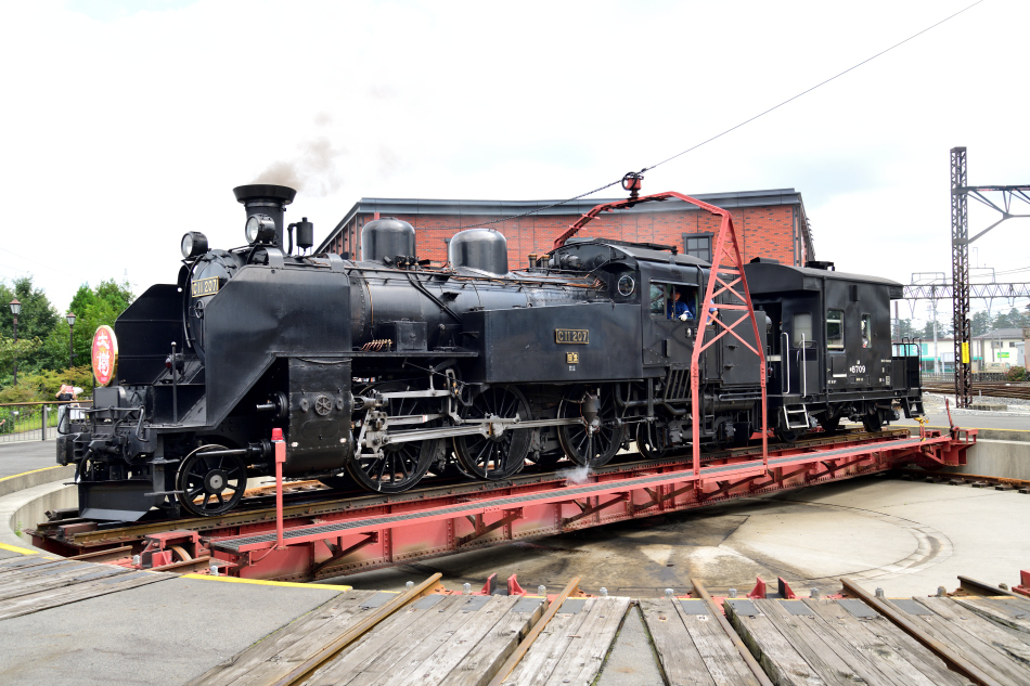 転車台の鎖錠装置が動作してロック,汽笛吹鳴し後退を始めたC11 207号機。 | ||||||||||||||||||||||||||||||||||||||||||||||||||||||||||||||||||||||||||||||||||||||||||||