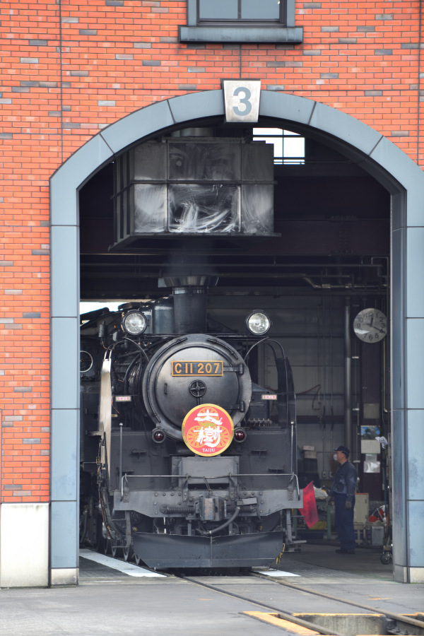 | No.D850_240915-094 2024年9月15日 C11 207+ヨ8709 東武鉄道 下今市機関区 3番庫への入庫を完了し午後の大樹5号,6号牽引に向けて整備されるC11207号。 |
