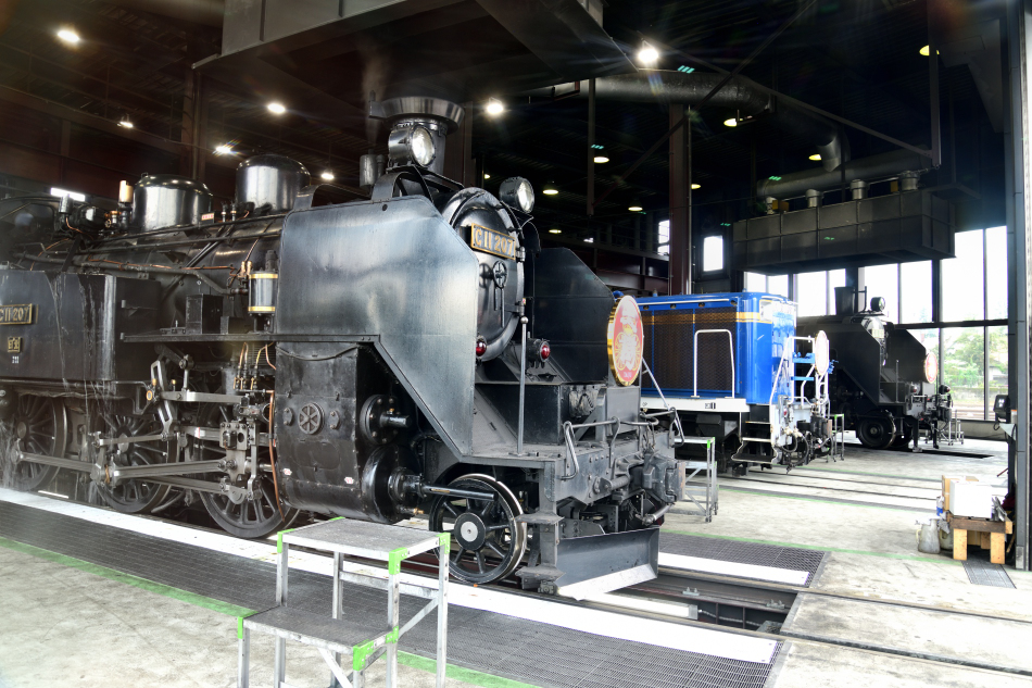 美しいレンガ調の3線扇形車庫。2017年の開設当初は3番と2番の2線機関庫でしたが2020年に1番機関庫を増築しています。令和の時代にこの規模の蒸機向け設備を造ってしまうところが素晴らしい。![]() |