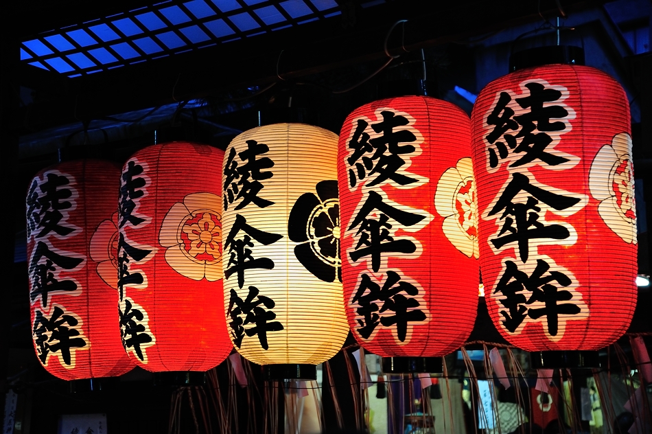 綾のロゴが入る駒形提灯