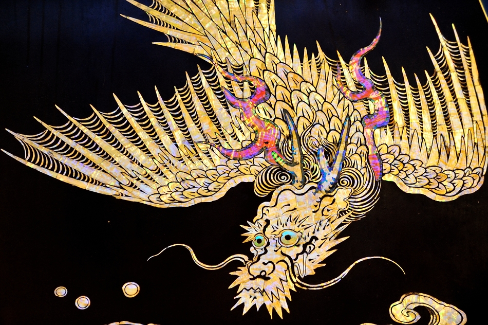 | 大舵 青貝による黒漆塗螺鈿飛龍文様 |