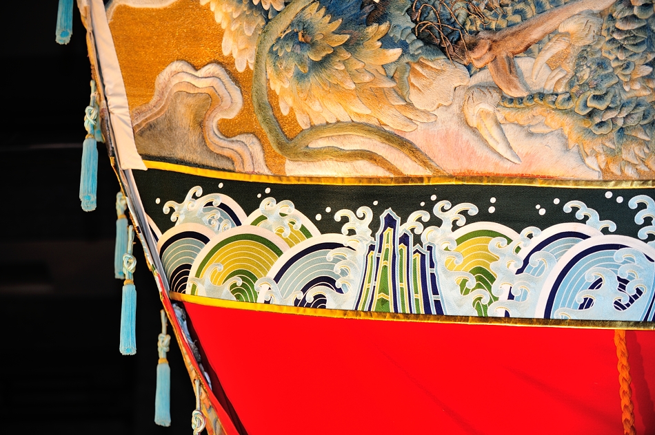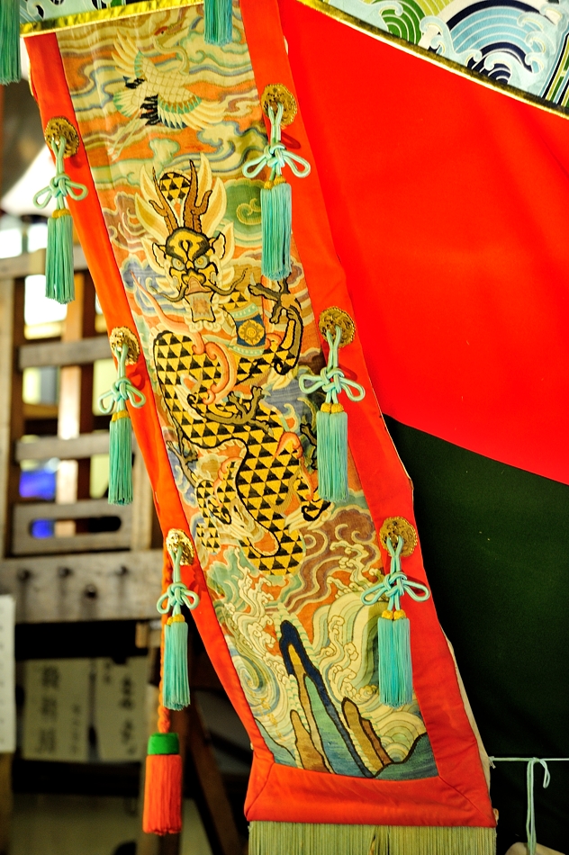 | 艪の高欄下、水引に刺繍された麒麟 |