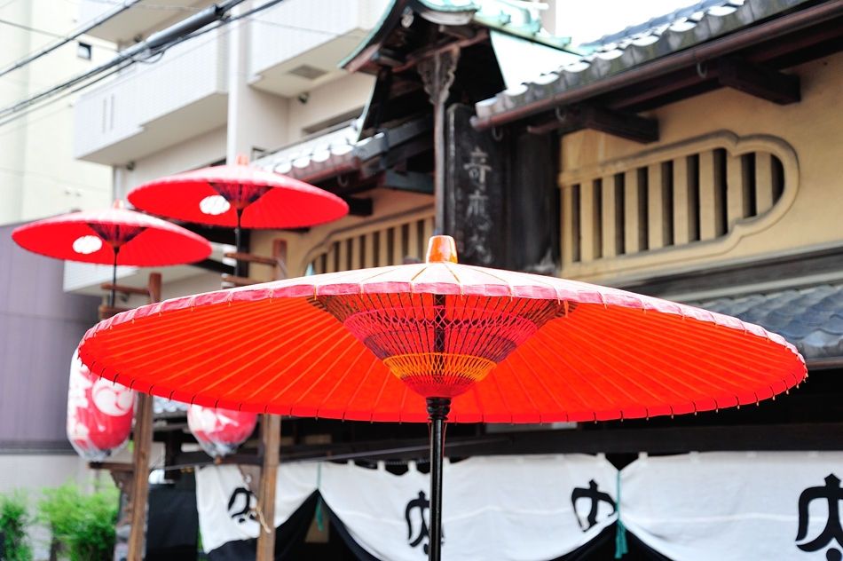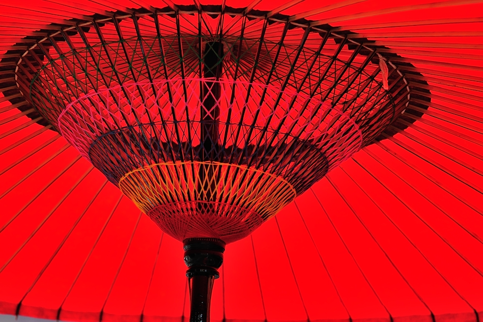 朱の和傘,提灯と「太」ロゴ入りの水引