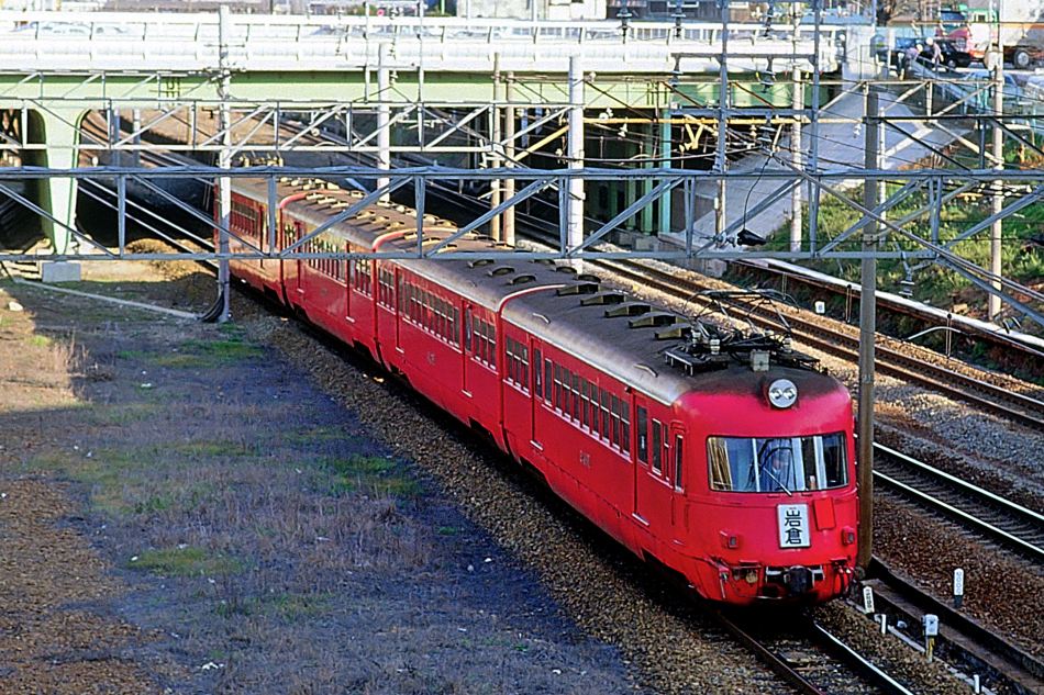 | No.144‐02 1987年3月8日 5700系 ク5700形 他6両 急行 豊川稲荷行 名古屋本線 ナゴヤ球場前→金山橋 豊川稲荷 ク5700形‐モ5750形‐モ5850形‐ク5800形+系列不明2両 新岐阜 急行豊川稲荷行きの5700系。 |