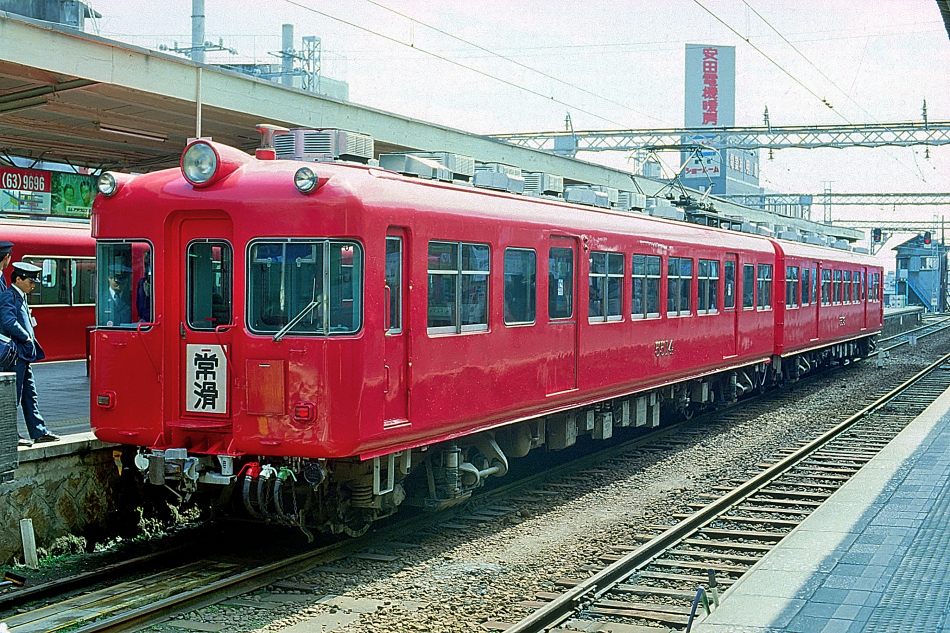 常滑 ク6000形‐モ6300形‐サ6100形‐モ6200形 新岐阜 6000系4両で運転される普通常滑行き。側窓が固定式の初期型。 |