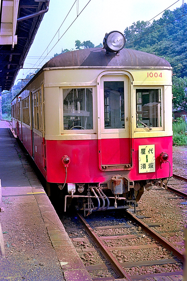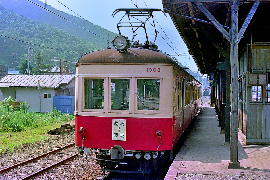 須坂 モハ1003‐モハ1004 屋代 上の写真の翌日の屋代駅にて原形の1003の美しい姿,木造の旅客上屋も良い雰囲気。 (2024/05/02シャドー調整) ![]() |