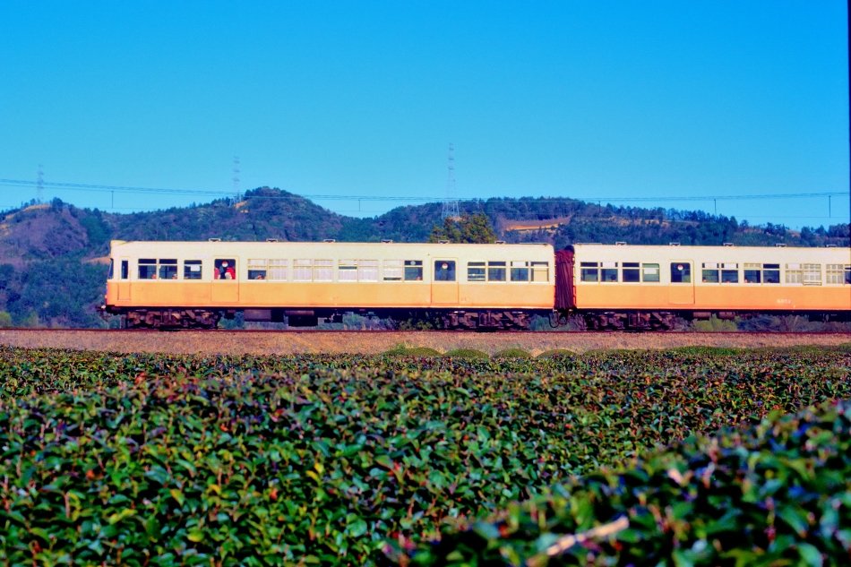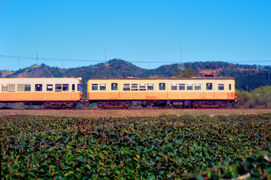 金谷 モハ311‐クハ511 千頭 茶畑を見下ろす築堤を走る311系。 |