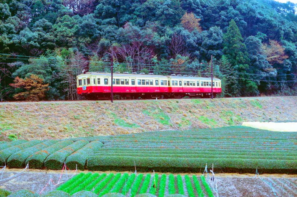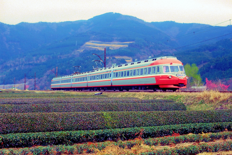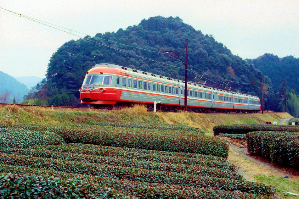 金谷 モハ3005‐モハ3004‐サハ3003‐モハ3002‐モハ3001 千頭 ロマンスカーと茶畑の組合せ |