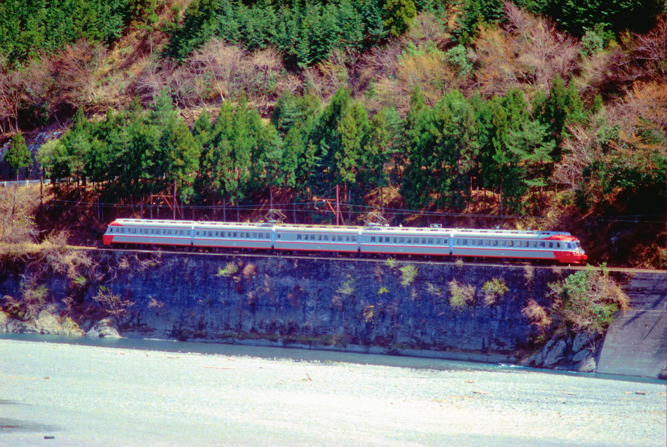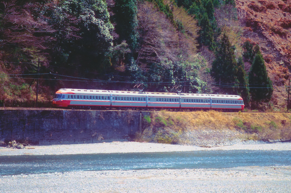 金谷 モハ3005‐モハ3004‐サハ3003‐モハ3002‐モハ3001 千頭 大井川沿いを走る3000系急行[おおいがわ] |