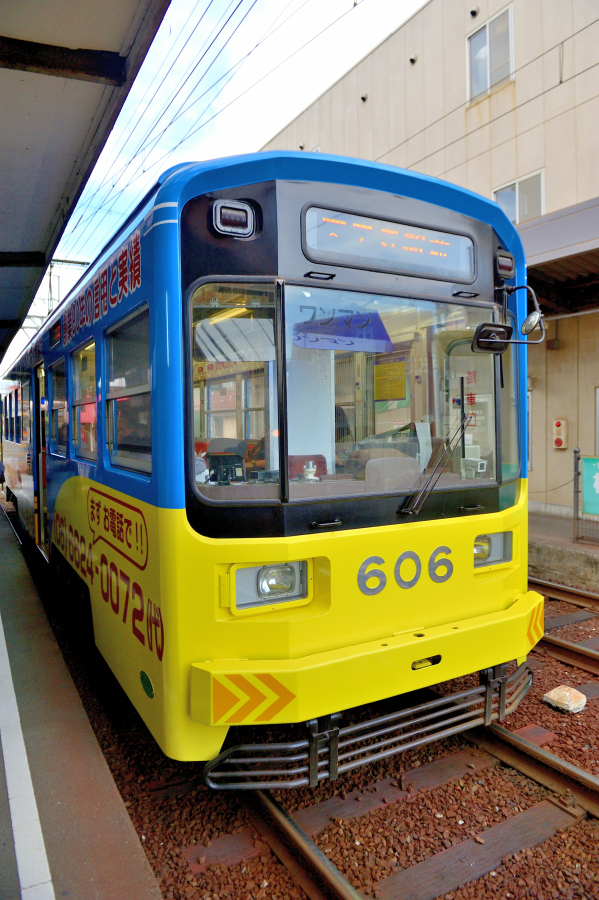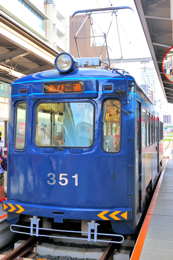 3車体連接固定編成,阪堺電軌としては初の超低床型車両となった1001形。堺市と国の補助により3編成が導入され[堺トラム]と名付けられています。また1001号は[茶ちゃ],1002号は[紫おん]と呼称が定められており,2015年に登場した写真の1003号は[青らん]となっています。 | ||||||||||||||||||||||||||||||||||||