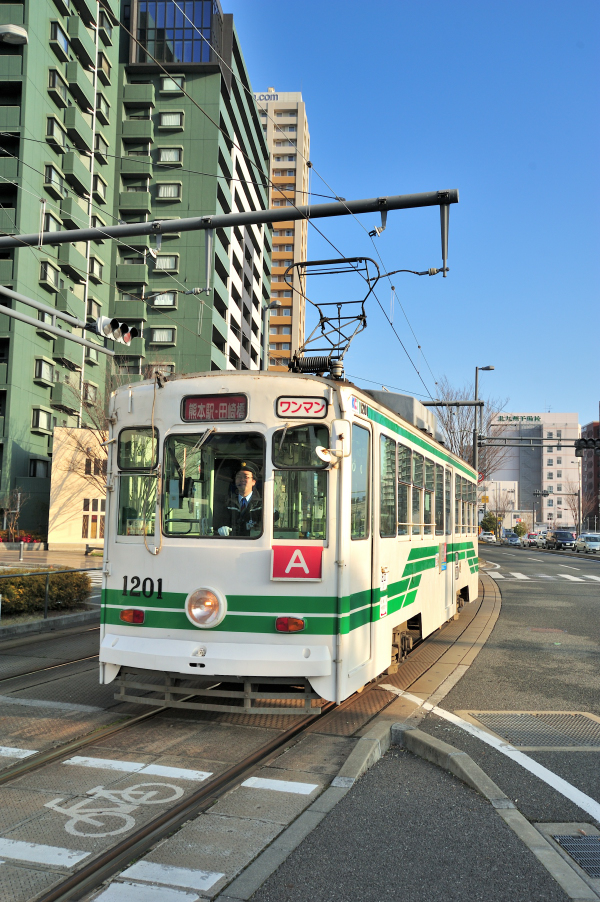 | No.D700_20170218‐027 2017年2月18日 1200形 1201号 A系統 健軍町行 田崎線 二本木口→熊本駅前 |