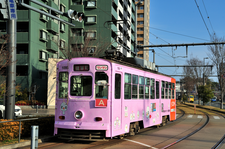辛島町電停に停車中の1096号。 (2017/02/25追加) |