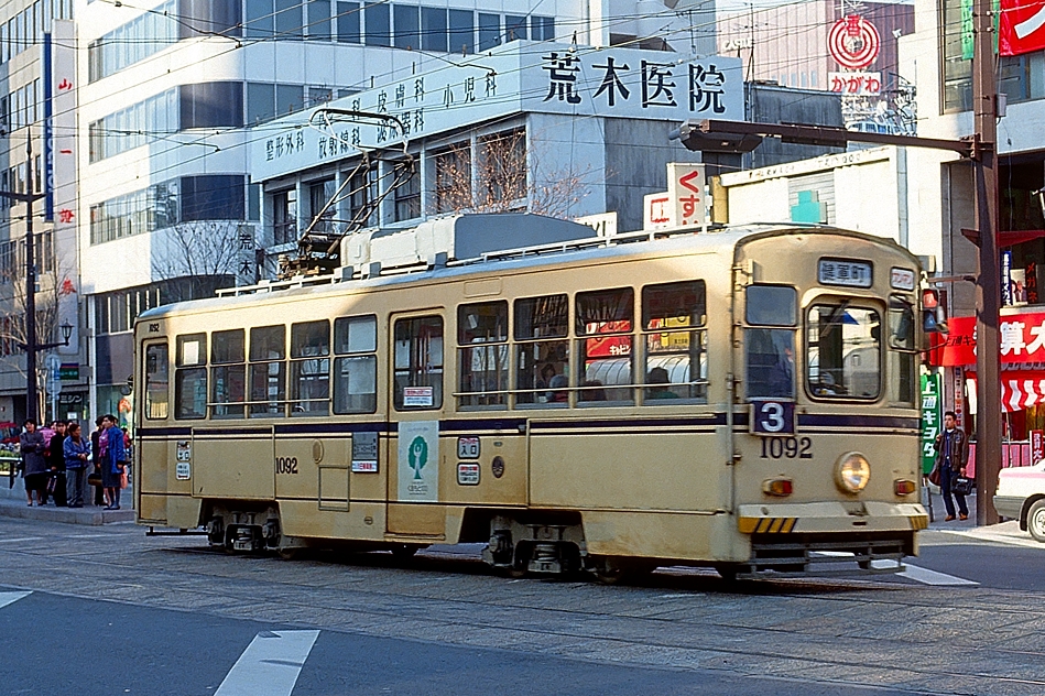 | No.180‐05 1990年1月26日 1090形 1092号 3系統 上熊本駅前行 幹線 辛島町 |