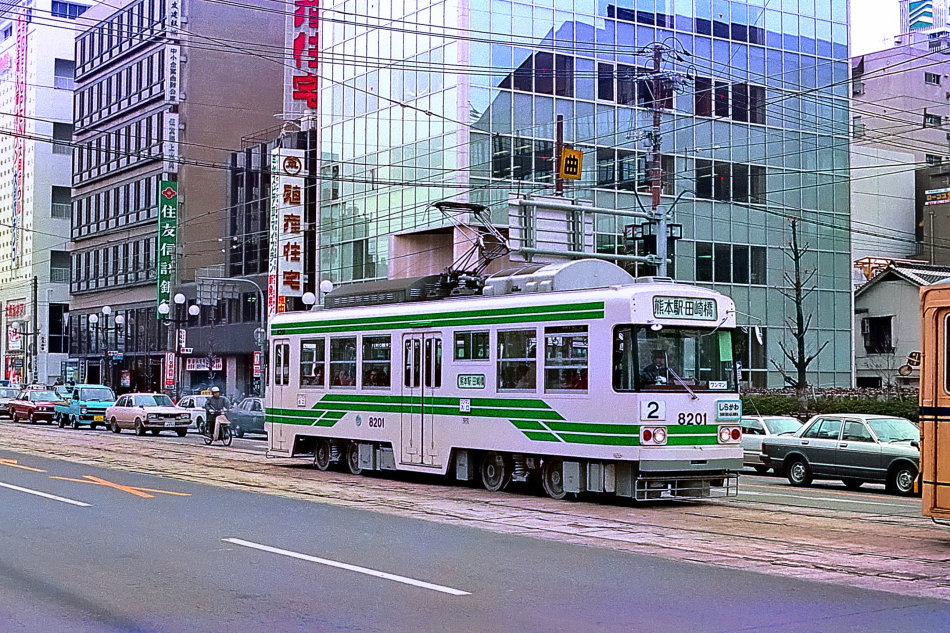 | No.N8306‐18 1983年3月11日 8200形 8201号 2系統 熊本駅・田崎橋行 幹線 通町筋→熊本城・市役所前 |