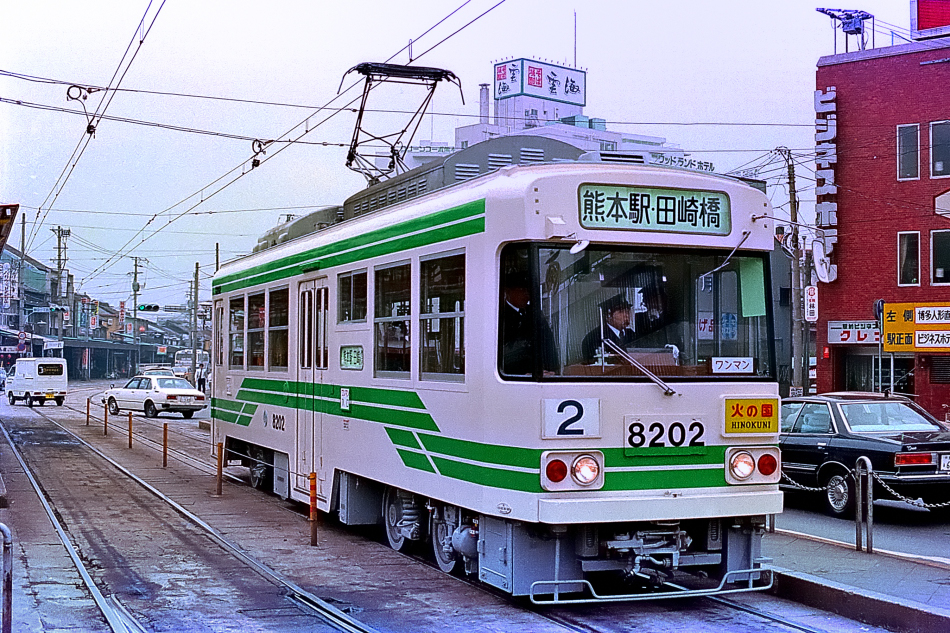 | No.N8306‐22 1983年3月11日 8200形 8202号 熊本駅・田崎橋行 幹線 通町筋付近 |