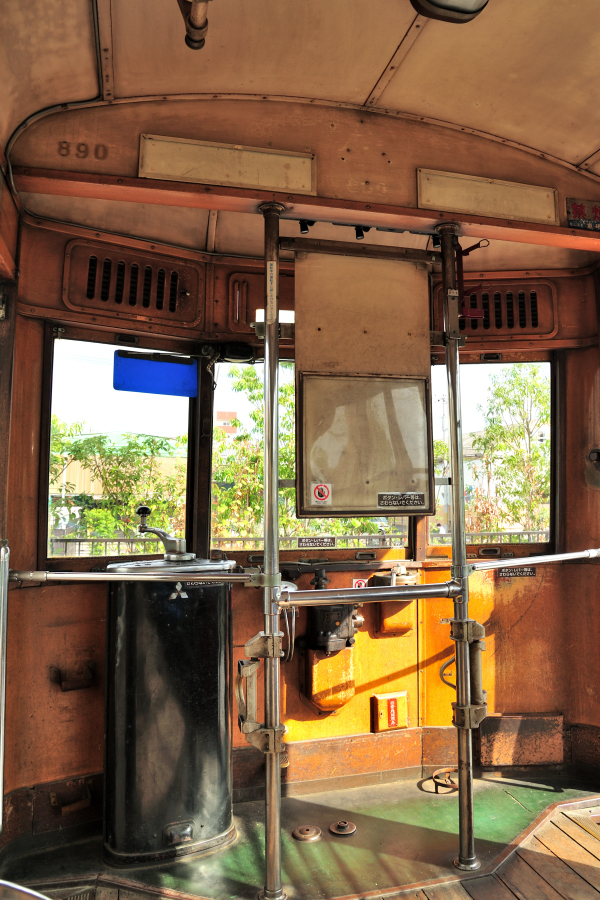 | No.D700_141011‐179 2014年10月11日 800形 890号 梅小路公園市電ひろば 運転席には座席がありません。N電以来の伝統。 (2014/10/18追加 2024/05/09シャドー調整) |